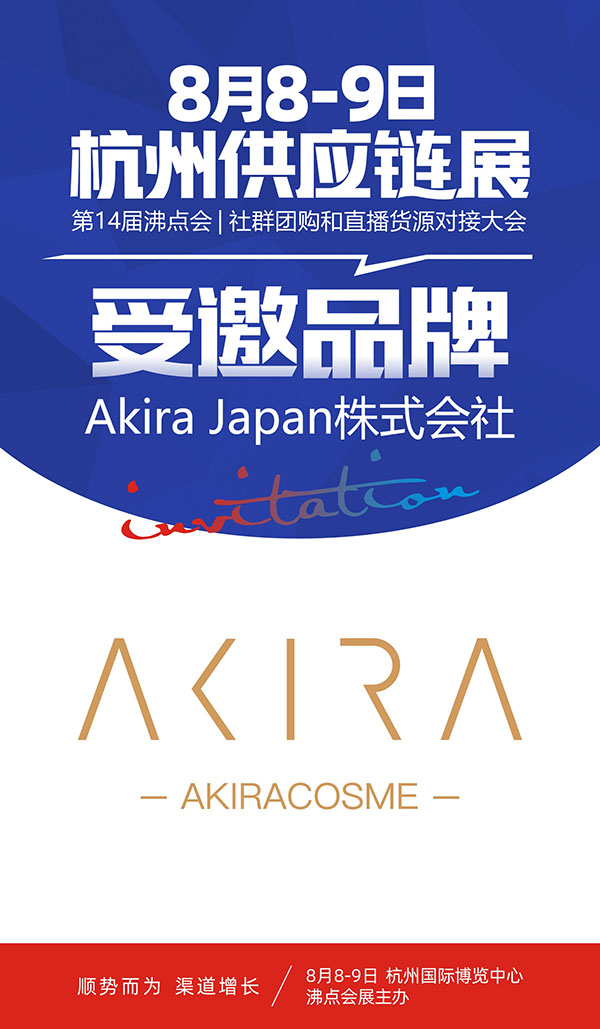 2021年8月8-9号,8月8杭州供应链展,Akira Japan株式会社与你相约杭州国际博览中心,展位号:3BD23,不见不散。