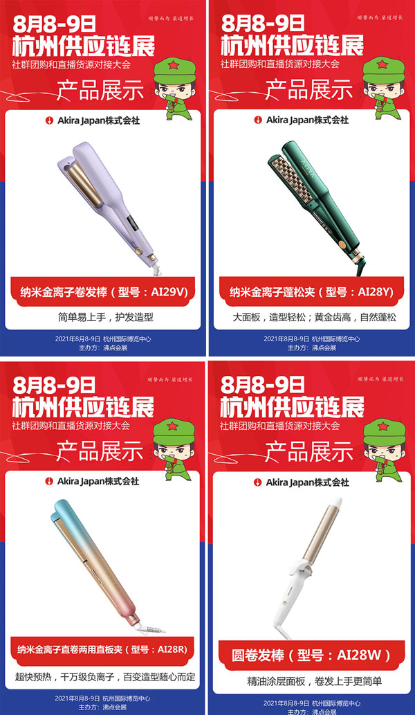 8月8杭州供应链展是沸点会展主办,4458和万团会联合承办,本次大会以“顺势而为,渠道增长”为主题,将聚集600+供货商,500+平台,500+MCN机构及个人主播,300+供应链前来选品洽谈合作;更有20+名嘉宾与会,围绕社群团购趋势、爆品打造、人员裂变、活动运营、品牌塑造等多个维度进行探讨交流,Akira Japan株式会社受邀参展本次展会。