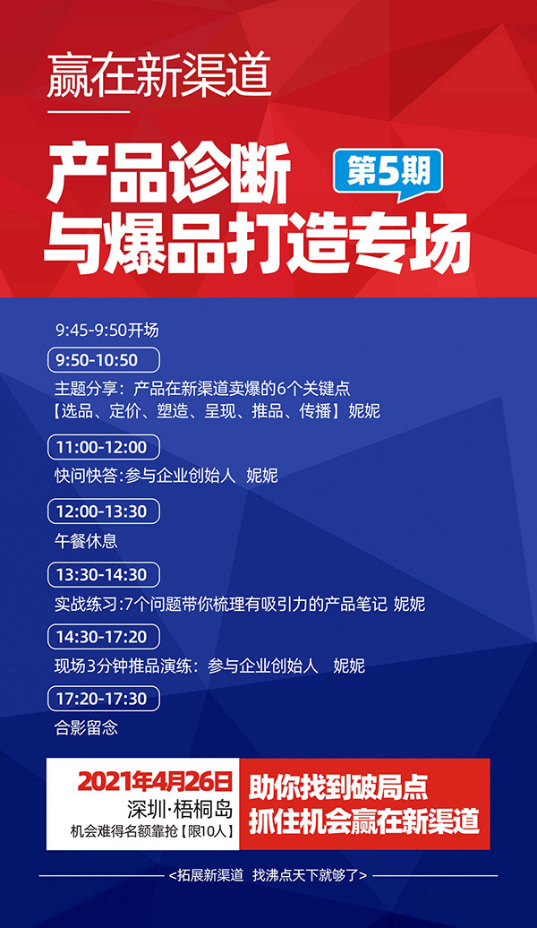 所以,2021年我们推出【赢在新渠道产品诊断会】,帮助进入新渠道的企业和品牌,更好的了解社群团购,并且掌握做产品笔记的关键点和推品的要点。