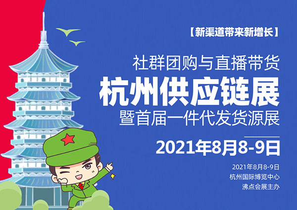 2021第14届沸点会@杭州供应链展(团购与直播一件代发货源对接会)将于2021年8月8-9日在杭州国际会展中心举办。