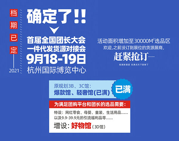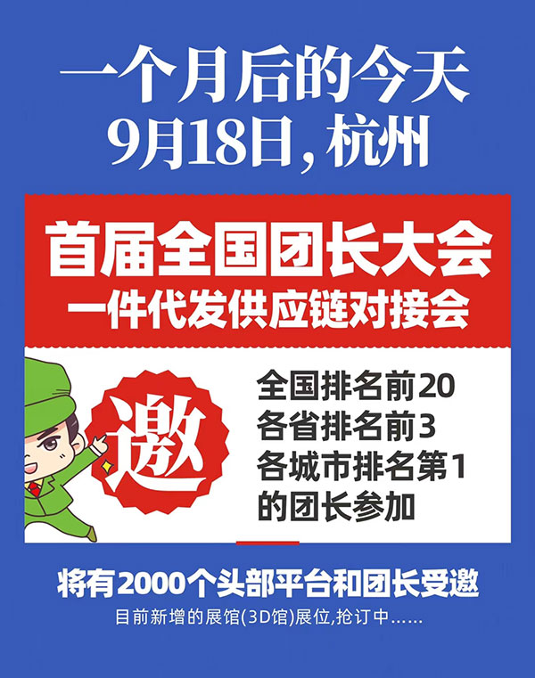 如果你想拓展渠道,想要获得销售增长,9月18号杭州一件代发货源对接会暨首届全国团长大会,你应该来。