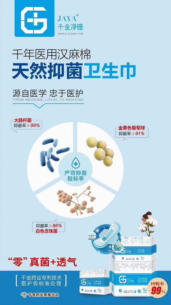 千金净雅是专注女性健康60年的千金药业旗下的卫生巾品牌,是国内唯一一个权威医护级认证+天然抑菌双重医护级卫生巾品牌,产品并添加了千金药业国家级专利保密配方,拥有永远无法超越的产品力。