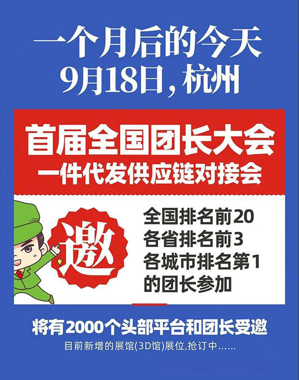 行业第一场团长大会,谁一起去?举手!9月18日杭州首届全国团长大会