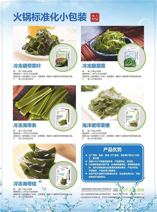 大连经济技术开发区亿海水产品有限公司位于大连开发区大李家海岸,自然条件优越,水产资源丰富。公司于2000年成立以来,不断探索进取,现已发展成为以备案养殖场为原料基地,以精深加工为基础,集养殖、加工、冷藏、销售为一体的规模化综合性加工企业。公司厂区面积33048.66平方米,养殖面积17000亩,年产鲜品裙带菜、扇贝20000吨;生产加工车间12682.25平方米,配套冷库7000吨。拥有符合《出口食品生产企业卫生要求》高标准的生产车间,配备进口风力选别机、静电选别机,色彩选别机、X线选别机、全自动包装机及金属探测器等先进生产设备,技术力量雄厚,设施设备先进,在国内同行业中处于领先地位,亿海水产愿与您携手共创美好未来!