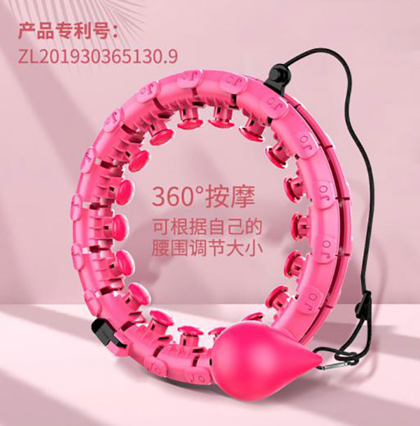 1.24节不掉的呼啦圈。明星同款,网红产品。产品获得外观设计专利证书。 转圈时不用担心掉落问题,内径有含有弹簧的按摩头,同时起到环绕按摩腰部的作用。可根据自己的腰围进行增减节数,自由拼接,一家人都可适用。