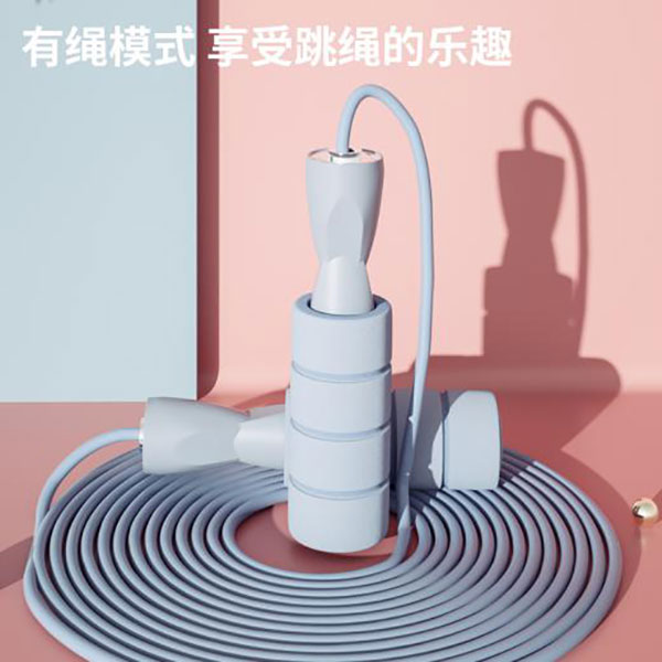 3.有绳+无绳负重球跳绳。两种模式。一根是有绳,可以锻炼协调性、享受律动的乐趣。一根是无绳跳绳,锻炼时不占空间不绊脚,锻炼不打扰他人。泡棉手柄,握感舒适,可根据自己的身高来调节绳长。