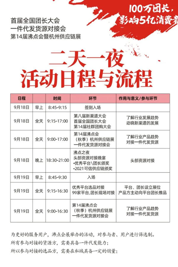 > 10分钟前更新:9月18日杭州全国团长大会(二天一夜)流程