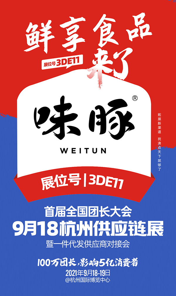 这是味豚第一次参加沸点的活动,想通过活动拓展团长/平台渠道,把品牌,产品带给全中国的家庭。如果您对味豚有兴趣,想再多一点了解品牌的相关情况,请于2021年9月18日-19日前往杭州国际博览中心,3DE11展位现场咨询!