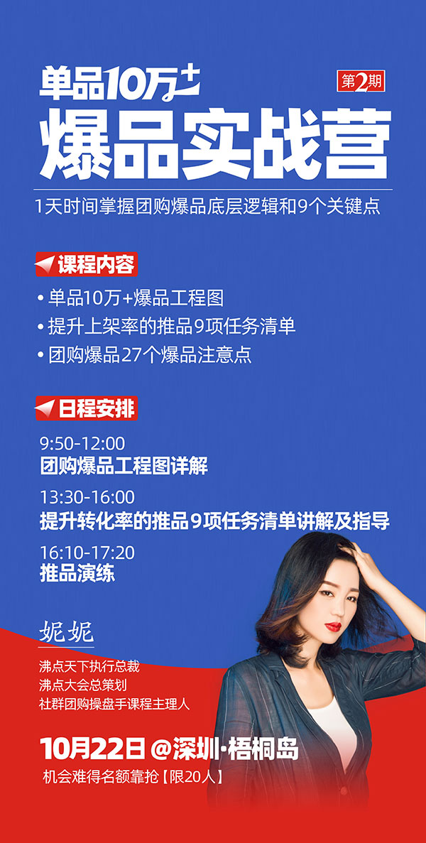 10月22号,妮妮将带大家一起,从【团购爆品工程图】开始,带着大家看懂工程图,做完作业清单,一起实现单品10万+。