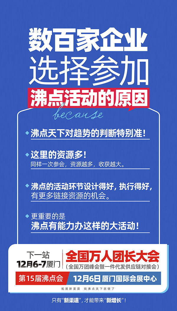 另外,沸点已经对全国排名靠前的top100团长进行了定向邀约,12月6号的厦门会,值得你参与。