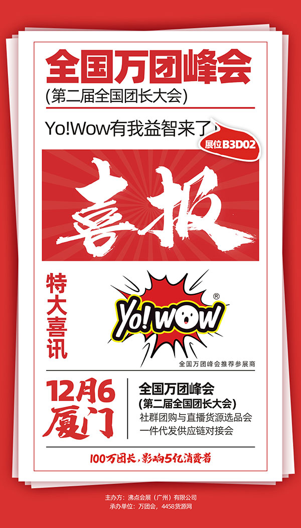 这是Yo!Wow有我益智第一次参加沸点会,期待与各平台进行高效链接合作,拓展社群新渠道。2021年12月6-7日,厦门全国万人团长大会,Yo!Wow有我益智与你相约厦门国际会展中心B3D02展位,欢迎各大平台观临指导,不见不散!