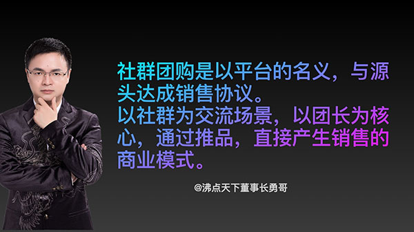 勇哥通过3年对社群团购的观察和思考总结出社群团购的定义: