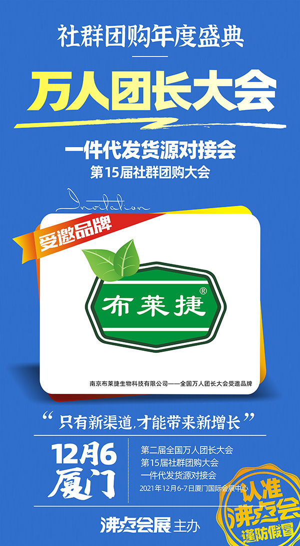 南京布莱捷生物科技有限公司诚挚欢迎更多优质的合作伙伴于12月6-7日前往厦门国际会展中心B4E01展位观临指导,共同发展,合作双赢。