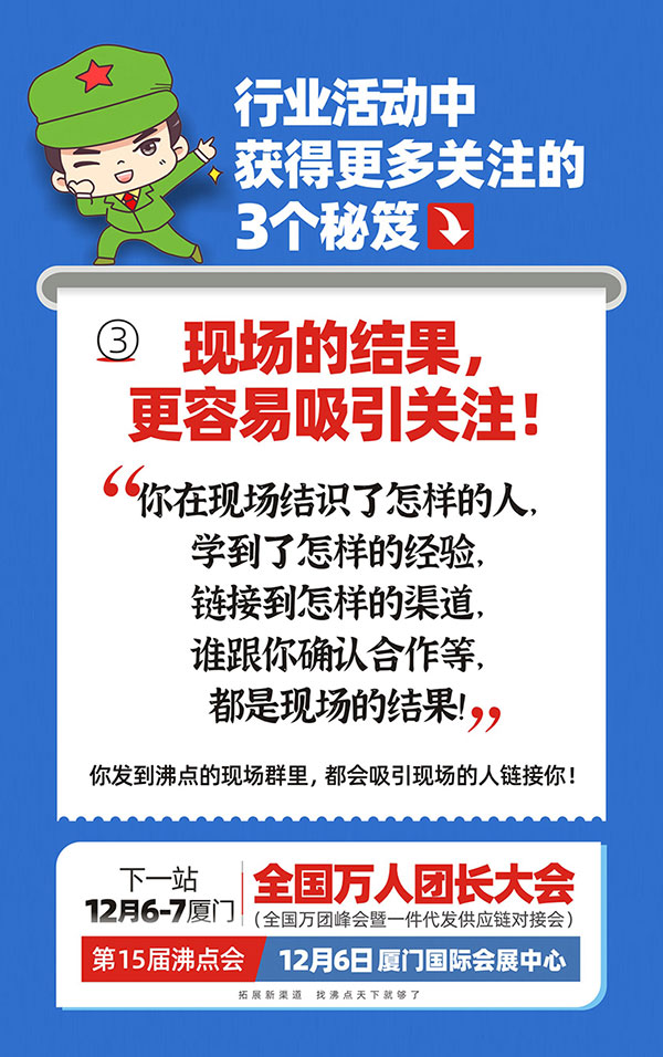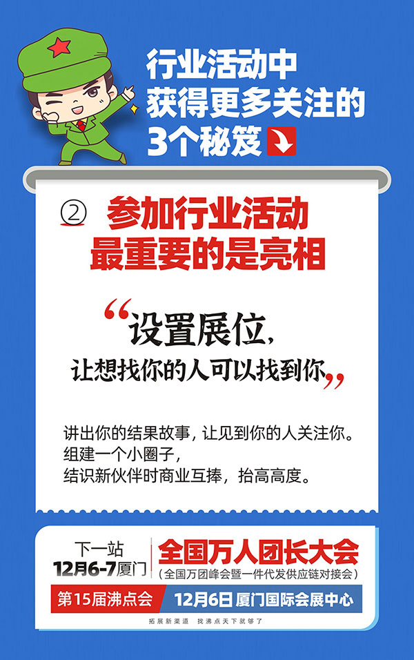 12月6号,厦门会,渠道方,平台方,团长都会在现场等你,如果你想要链接资源,实现年底的销售增长,这次活动你一定要参加。