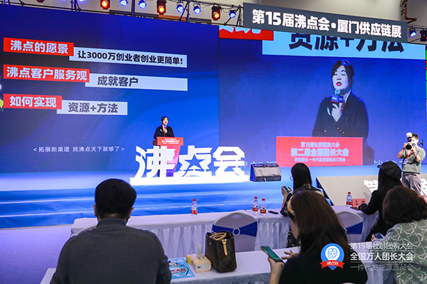 非常高兴与大家相聚在美丽的鹭岛,共同见证第15届沸点会社群团购大会、第2届全国团长大会、一件代发货源对接会的盛大召开,我代表主办方对各位百忙之中莅临大会及长久以来对沸点会的参与和支持,表示热烈的欢迎和诚挚的感谢!