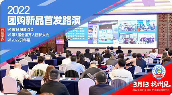 2022开年展,这个环节又做了迭代,成为了2022团购新品首发发布会,更多新品,更有吸引力,也将会有更多的平台和团长前来选品。
