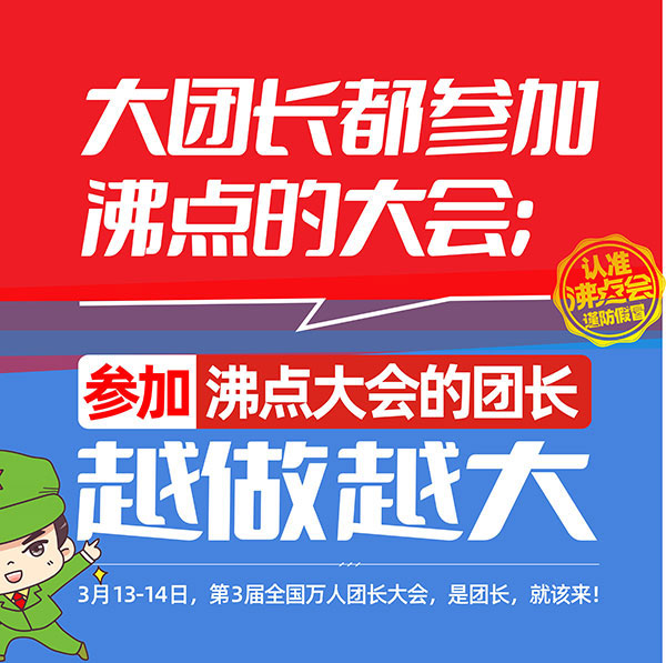 如果你也是大团长,如果你也想成为大团长,欢迎你也来参加2022杭州,第3届全国万人团长大会,3月13-14号,杭州国际博览中心。