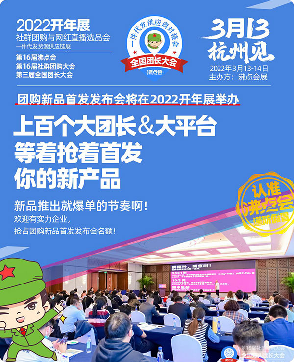 2022年3月13-14号的第3届全国万人团长大会,有上万款产品将在现场展出,试想想,对于团长而言,这又是多么好的卖货机会呀。