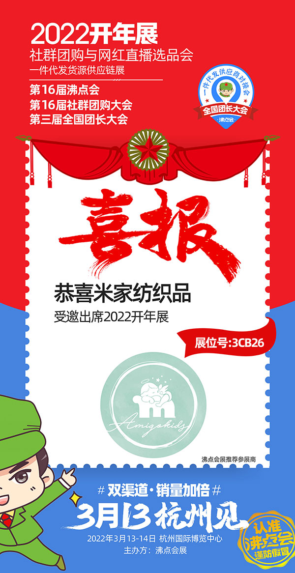 3月13—14日,米家纺织品与您相约杭州国际博览中心3CB26展位,期待你的到来!