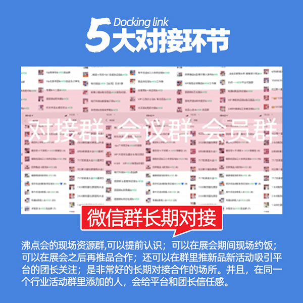 沸点会展创始人姜山说:社群供货商本身就是一个圈子,让大家提前建群,提前交流,提前约饭,有利于大家互通资源,快速进入团购的圈子。