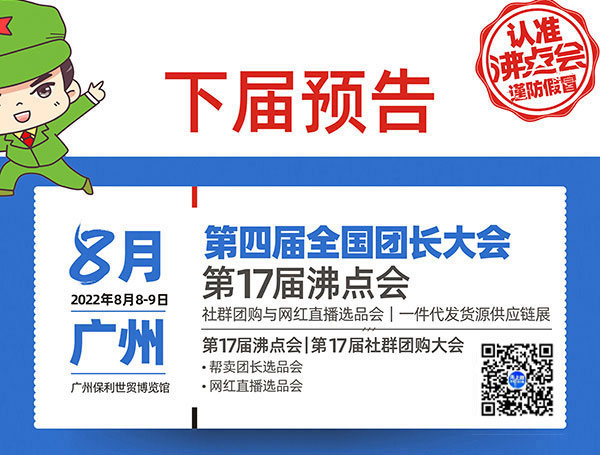 2022杭州团长大会将于2022年3月12-13日在杭州国际博览中心隆重举办,分为二天一夜在杭州国际博览中心举办!大会分为3大馆,6大展区,展位面积30000平米,展商数量800+,新品爆品10000+,渠道方1000+,行业观众10000+。届时,广州前网后厂珠宝有限公司受邀参展!