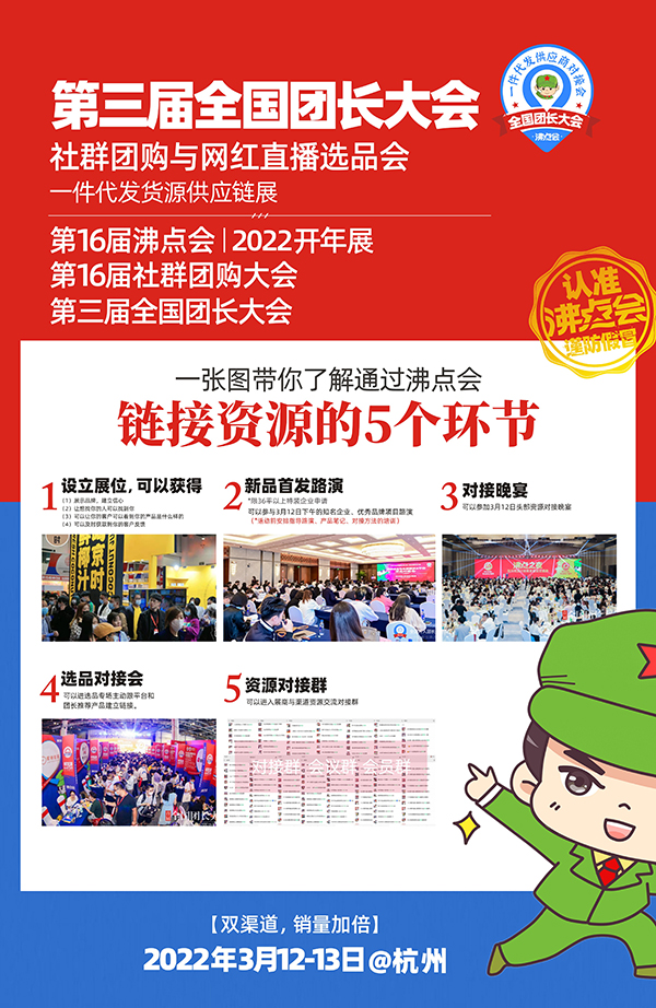 杭州第3届全国团长大会,是2022年行业的开年展,想要拓展新渠道,想要链接更多团长和平台的预制食品企业,你一定要来。