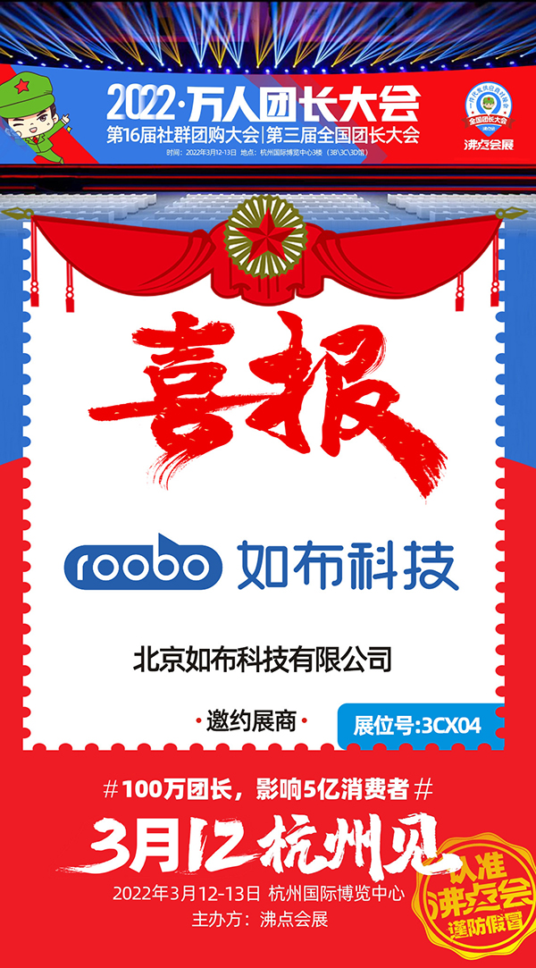 2022杭州全国团长大会,一件代发货源对接会定于2022年3月12-13号在杭州国际博览中心举办,目前正在进行展位招募,参展商和平台方都在踊跃报名中,北京如布科技有限公司受邀参展本次展会。