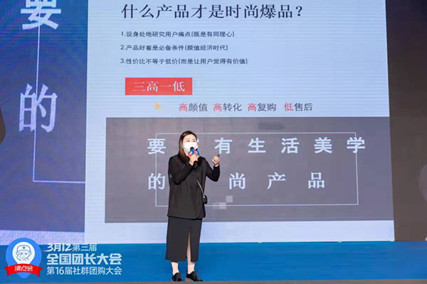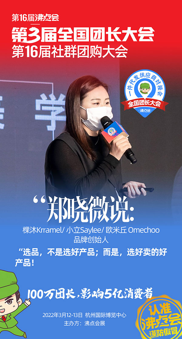 第3届全国团长大会暨第16届沸点会于3月12号在杭州国际博览中心举办,期间举办的第10届新渠道趋势大会就行业趋势,实战经验,以及选品需求等做了分享。启郝国际创始人郑晓微揭秘时尚爆品方法论。