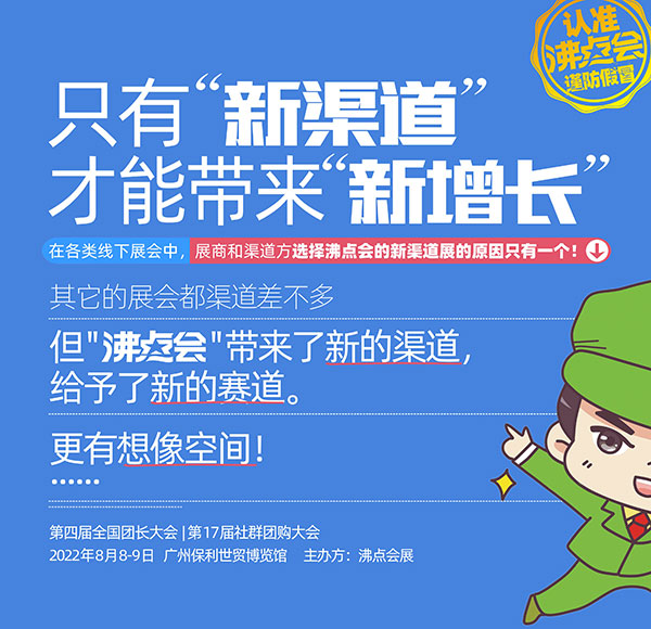 2022直播+社群团购货源供应链展览会、第四届全国团长大会&第17届沸点会&社群团购大会&新渠道大会定于8月8日-9日在广州保利世贸博览馆举办,欢迎行业同仁积极参与。