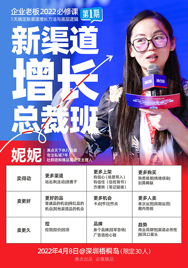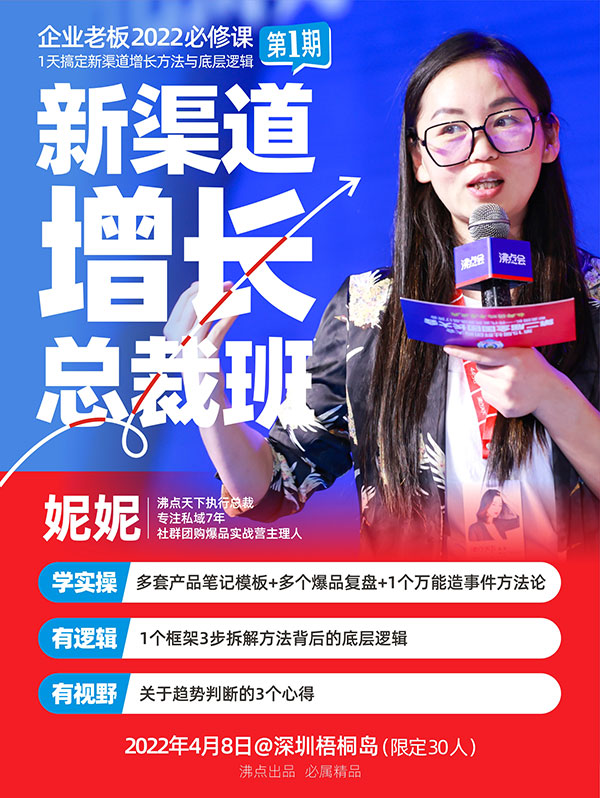 大家好,我是妮妮,最近我将要开设一个课程:新渠道增长总裁班。