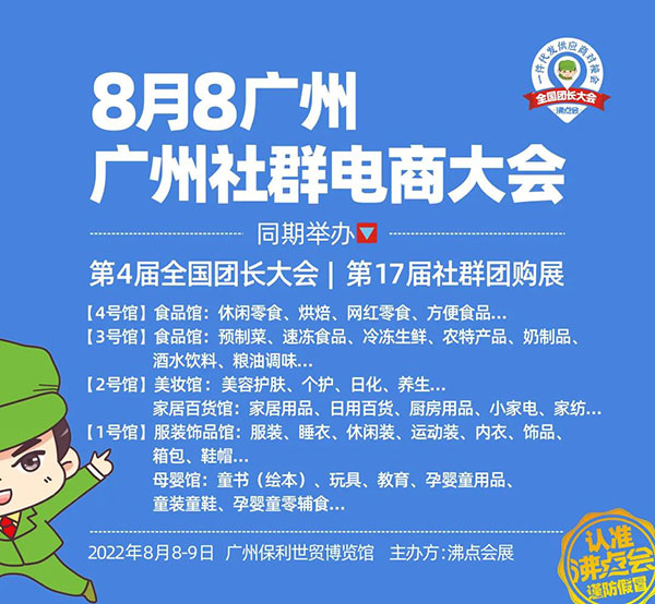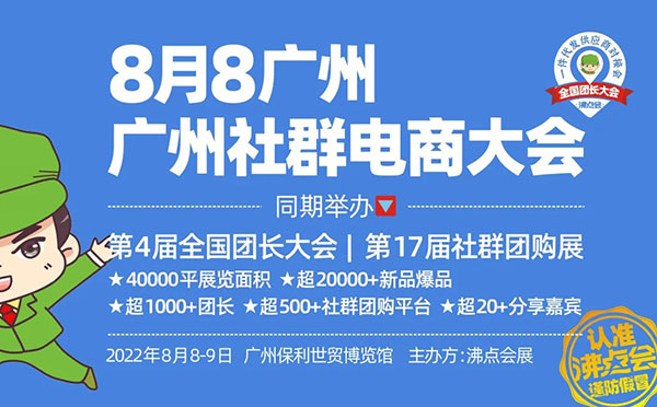 广州社群电商大会是由沸点会展举办的一个助力企业拓展社群赛道的展会,展会时间是8月8号,展览地址是广州保利世贸博览馆。