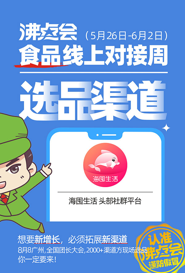 为助力食品企业精准对接社群渠道资源,把握社群食品品类的销售增长机遇,沸点会展特打造【沸点会.食品对接专场】,为食品产品企业提供一个与社群团购平台及团长专场的对接机会,从而让双方快速精准对接,实现销售增长,时间是:2022年5月26日-6月1日。