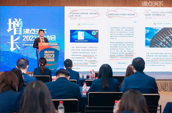 在数据总结篇,广州沸点会展总经理姜山姜总从国家政策,地方支持,以及企业参与等角度,为大家分析了2023年整个会展行业的市场环境,同时也指出2022年沸点会展的8大成绩。