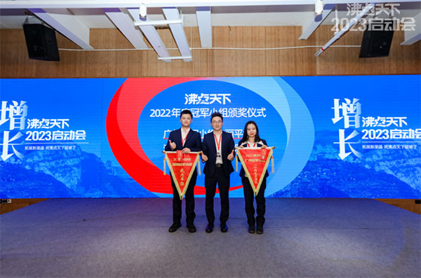 深圳销售总监黄略为2022年度广州冠军小组苏丽平组,2022年度深圳销售冠军小组万朋组颁奖;