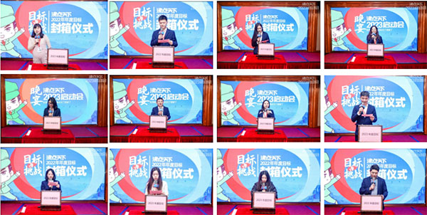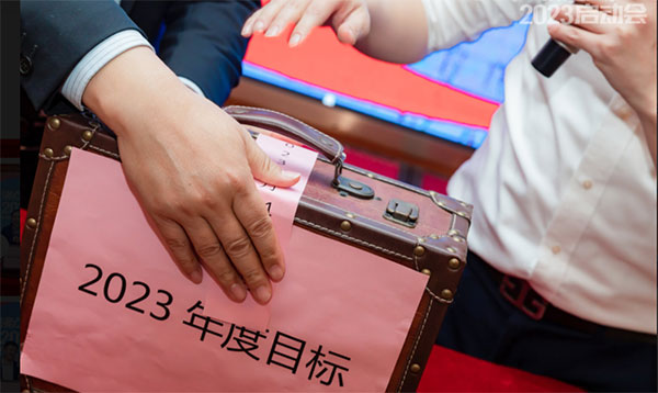 在2023启动会晚宴环节,做了2022年度目标开箱仪式与2023年度目标封箱仪式。