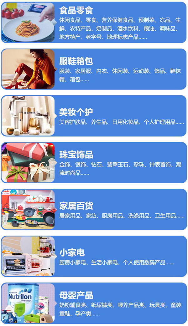 食品零食:休闲食品、零食、营养保健食品、预制菜、冻品、生鲜、农特产品、奶制品、酒水饮料、粮油、调味品、地方特产、老字号、地理标志产品……