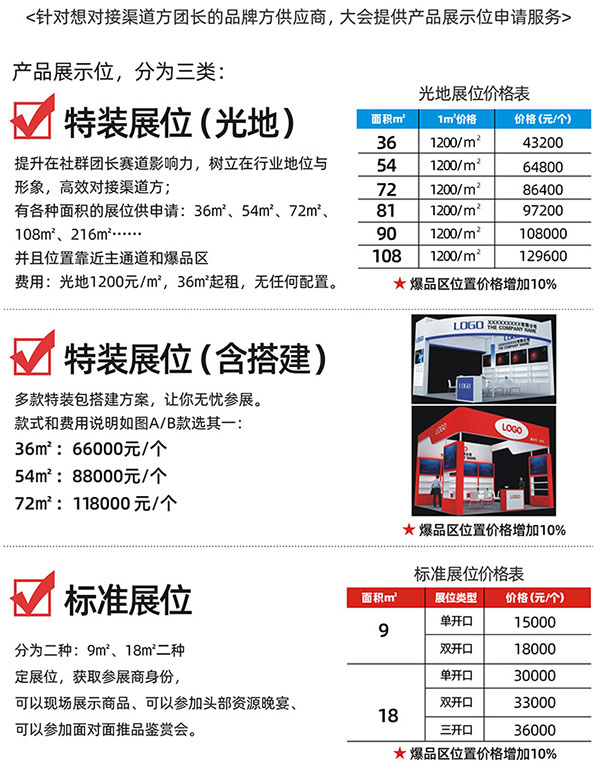定展位,获取参展商身份,可以现场展示商品、可以参加头部资源晚宴、可以参加面对面推品鉴赏会。
